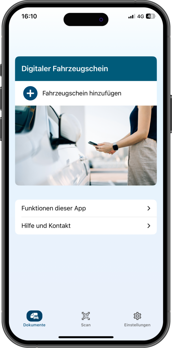 Der digitale Kfz-Schein spart Platz in Portemonnaie oder Brieftasche, und man hat in vielen Situationen den Nachweis über sein Fahrzeug parat – das Vorzeigen auf dem Handy genügt. Er lässt sich außerdem mit anderen Fahrzeugnutzern teilen, bei ihnen landet der digitale Schein ebenfalls in der i-Kfz-App.